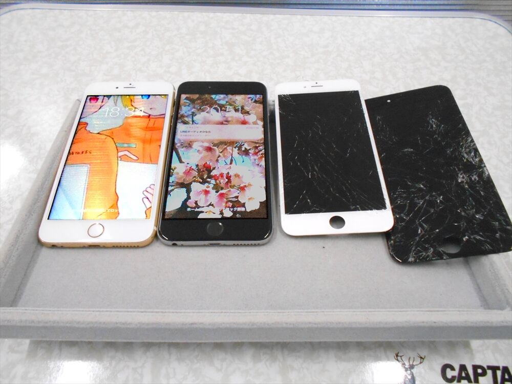 iPhone6SPlusは、かなり前からガラスパネルにヒビがあったまま、サブ機としてSIMなしで、ご使用されていたそうですが、先週お子さんが落としてしまい、画面全体にヒビが広がってしまったとの事でした~(x_x;)?