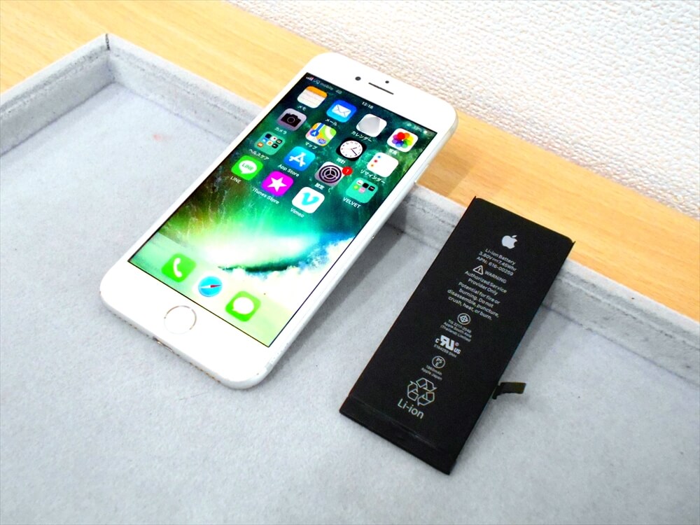 修理ご依頼を頂いたiPhoneは奥さまのiPhoneで、ご購入されて4年以上になるそうで、バッテリーの充電が全然もたず、常に充電をしていないとiPhoneの電源が切れてしまうとの事でした~(+_+;)?