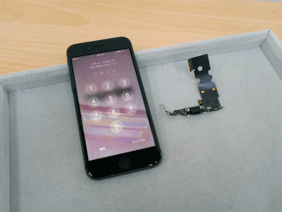 さっそくドックコネクタ交換修理を行うと、サクッと短時間でお安く、正常に充電ができるiPhoneに復活致しました!\(^o^)/