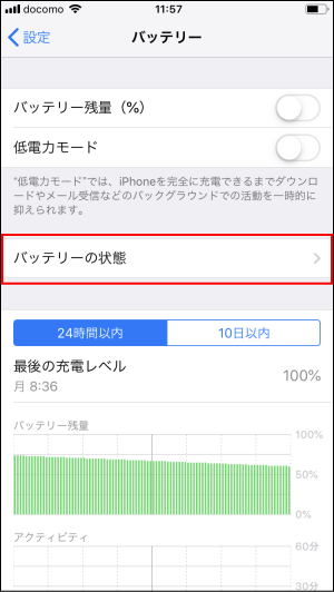 目安は下記の方法でバッテリーの状態を確認できます。