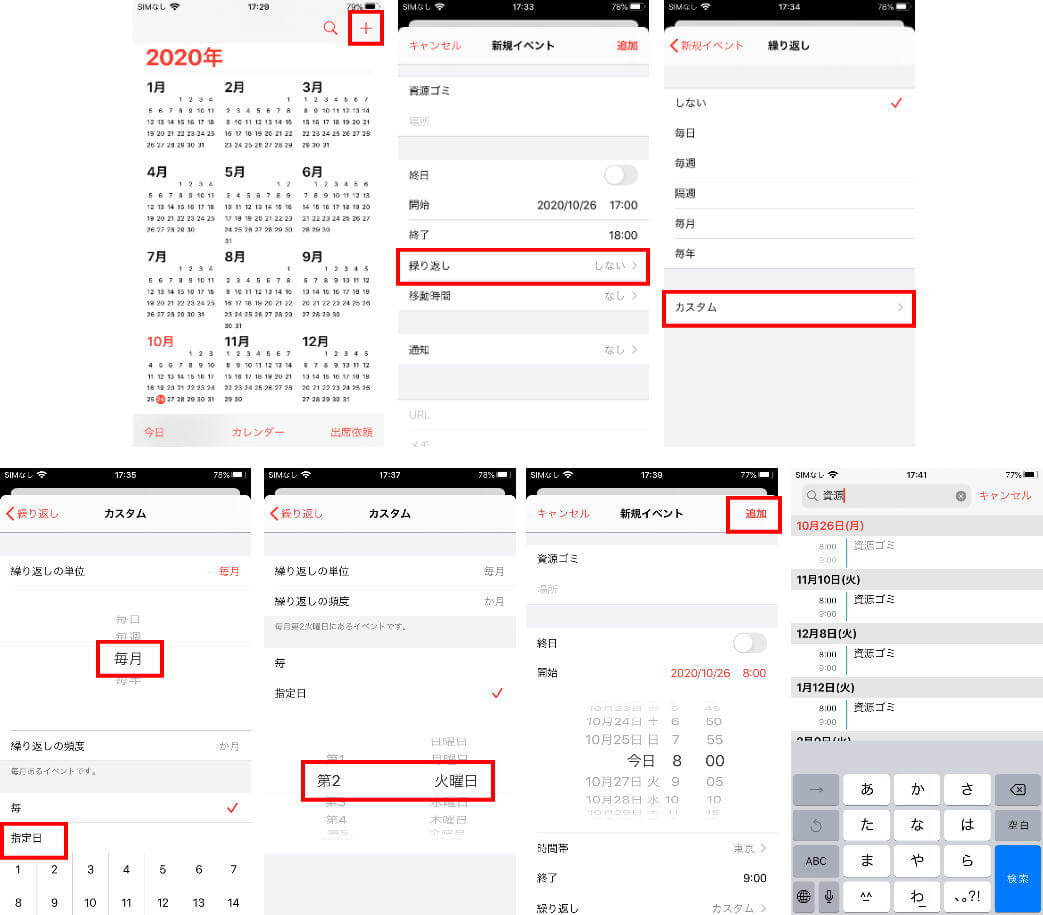 iPhoneの標準アプリ!「カレンダーアプリ」で隔週の資源ゴミ回収の日を通知する方法!(^_-)-☆